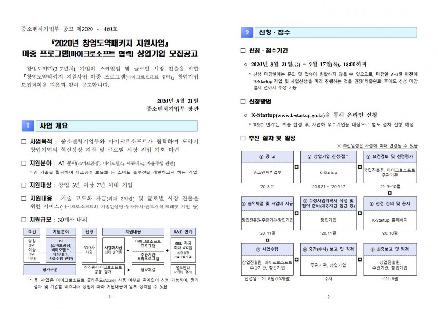 『2020년 창업도약패키지 지원사업』 마중 프로그램(마이크로소프트 협력) 창업기업 모집공고
